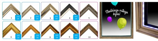 - stylowa drewniana rama - wiele wzorów do wyboru, w zestawie rama wraz z oświetleniem LED RGB