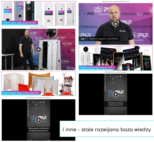 Kupując fotolustro lub fotobudkę P4F otrzymujecie bezterminowy dostęp do stale rozwijanej Bazy Wiedzy - dodawane cyklicznie szablony graficzne, filmy instruktażowe, instrukcje obsługi, materiały marketingowe, przykładowe szkice umów wypożyczenia - to wszystko i jeszcze więcej znajdziecie w Bazie Wiedzy P4F