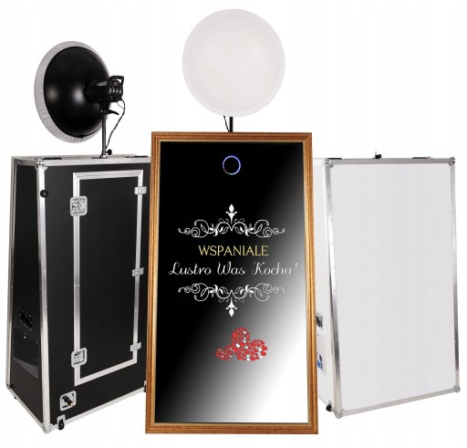 - obudowa fotolustra typu cases o wymiarach 153x91x58cm i wadze 75kg wykonana z płyty wodoodpornej i profili aluminiowych typu casemaker, z wbudowanym hartowanym, bezpiecznym lustrem o grubości 4mm dodatkowo zabezpieczonym folią, do kilkunastu razy bardziej odpornym na uszkodzenia niż zwykłe lustro weneckie, wbudowaną technologią dotykową i ekranem 4K UltraHD 3840x2160 50 cali + pokrywa ochronna na obudowę