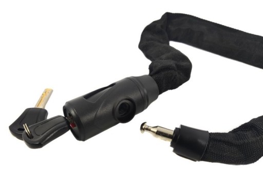 Zapięcie to stalowy łańcuch w ochronnej otulinie z materiału. Do zestawu dołączone są dwa kluczyki. Gniazdo, w którym znajduje się zamek, zabezpieczono przesuwną klapką. Łańcuch ma wszechstronne zastosowanie przeciwkradzieżowe. Może być wykorzystany do zabezpieczenia roweru, skutera, motocyklu oraz wózków dziecięcych.