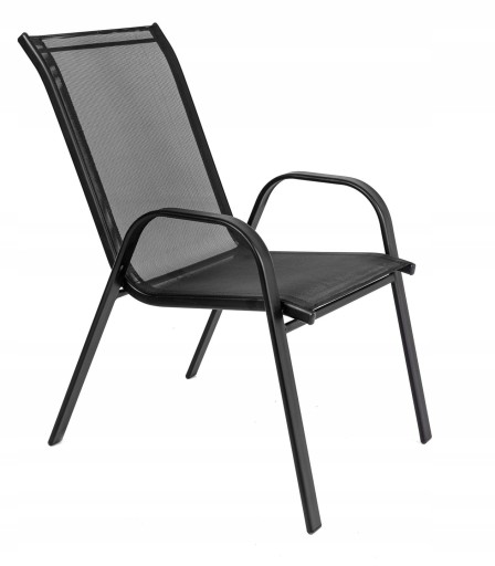 Wygodne krzesło idealne do Twojego ogrodu. Stelaż został podwójnie lakierowany proszkowo, co idealnie przystosowuje ten produkt to zastosowania wewnątrz jak i na zewnątrz. Siedzisko oraz oparcie zostało zrobione z czarnego, elastycznego obicia tekstylnego tak, aby maksymalnie zwiększyć wygodę. Posiada ono dwa oparcia boczne. Użyte materiały nie wymagają częstej konserwacji, są odporne na warunki pogodowe i nie wymagają specjalnych środków do pielęgnacji. Nóżki są dodatkowo zaopatrzone w nakładki z tworzywa sztucznego.