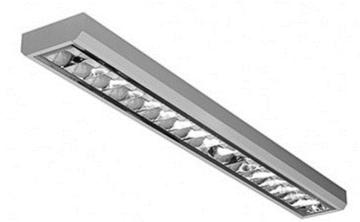 Produkt wewnętrzny, do montażu nasufitowego, IP20, źródło światła świetlówka T8, 1x58W, statecznik HF, typ optyczny DL.