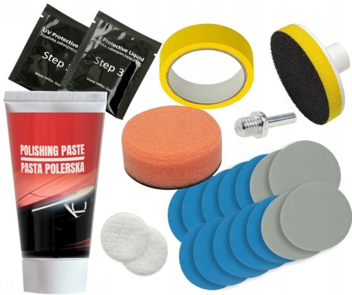 Profesjonalny zestaw do odnowy / polerowania zniszczonych, zmatowiałych, porysowanych reflektorów samochodowych.