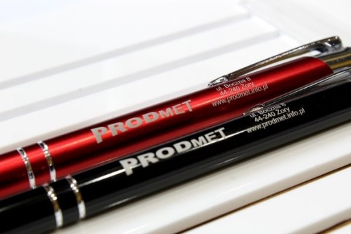 Na długopisach możemy wygrawerować dowolny tekst, grafikę, logo.