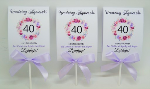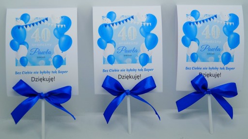 Lizaki są zawiązane wstążeczką z dołączoną grafiką odpowiednią do uroczystości ( proszę o podanie imiona i jaki kolor wstążeczki oraz nr grafiki)
