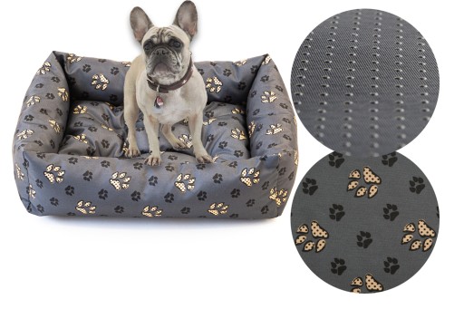 - Środek i boki legowiska zostały w całości wykonane z materiału wodoodpornego typu pasadena, a nie łączone z cienkim wigofilem, co daje większą estetykę i funkcjonalność produktu