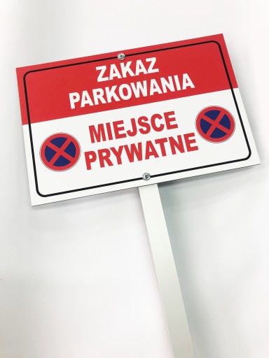 Tabliczka - ZAKAZ PARKOWANIA - MIEJSCE PRYWATNE - 40x30 cm DIBOND + słupek aluminium 100cm - GOTOWE DO MONTAŻU - zestaw!