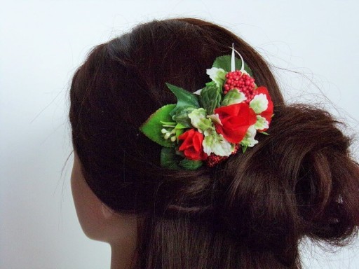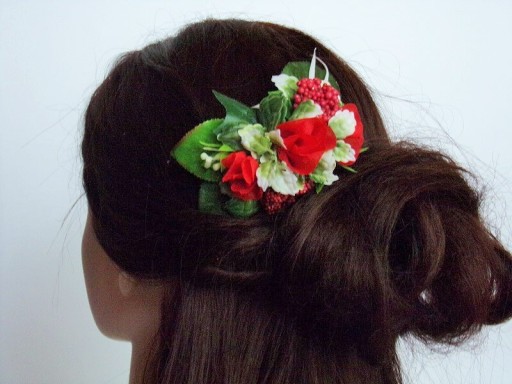 Grzebyk wykonany jest z dekoracyjnych kwiatków i listków.