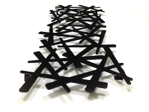 Dekoracja ta pełniąca funkcję wieszaka przedstawia wiele połączonych ze sobą kształtów. Ich połączenia i wypustki powodują, że mamy dowolność zawieszania na nim przedmiotów.