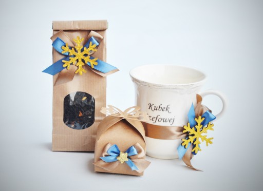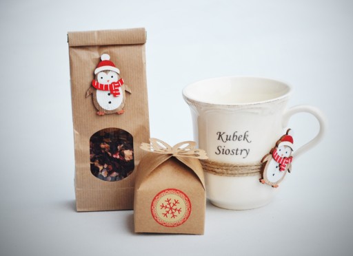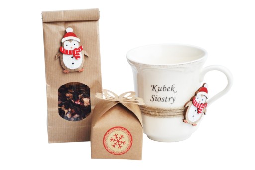 Piękny i praktyczny prezent na Święta Bożego Narodzenia - porcelanowy kubek, sypana herbata, czekoladowe cukierki - całość pięknie ozdobiona i zapakowana. Doskonały prezent pod choinkę dla najbliższych.