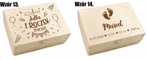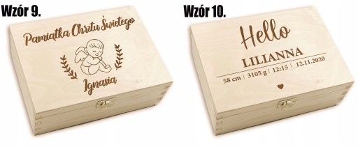 Oferujemy drewniane pudełko wspomnień z przegródkami jako wyjątkowy prezent na chrzest, roczek lub inną okazję.