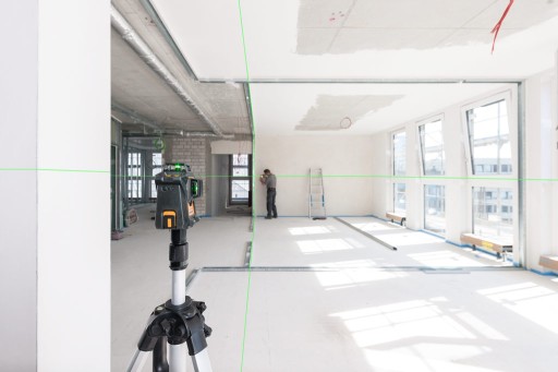 Zielona wiązka laserowa wysokiej klasy jest ekstremalnie widoczna nawet w przestronnych wnętrzach. Jaskrawy zielony kolor wyróżnia się z tła bez względu na rodzaj powierzchni, na którą pada. Duża ilość światła słonecznego wpadająca do pomieszczenia nie sprawia kłopotów w lokalizacji wiązki laserowej na znacznej odległości. Siatka precyzyjnych linii i kątów prostych pomaga podczas wielu czynności realizacyjnych, remontowych, montażowych i kontrolnych.