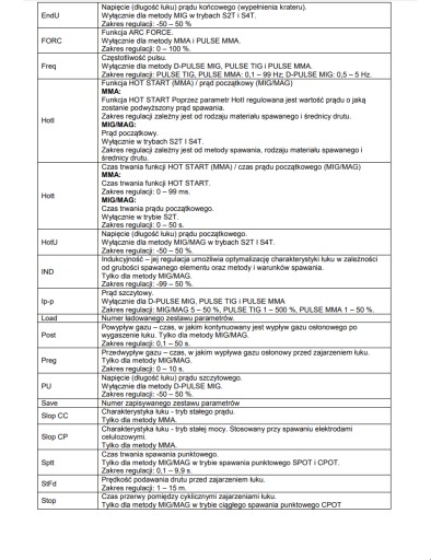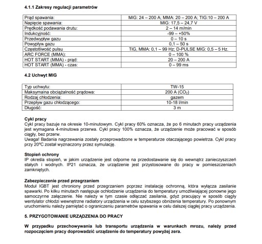 - Instrukcja obsługi w języku polskim całej spawarki oraz wszystkich możliwych funkcji