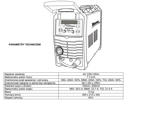 - Spawarka SHERMAN DIGIMIG 200 PULSE wraz z przewodem zasilającym z wtyczką