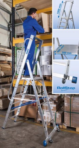 - Drabina jezdna z dużą platformą. Optymalne pod względem bezpieczeństwa i wszechstronnego zastosowania rozwiązanie wśród aluminiowych drabin wolnostojących.