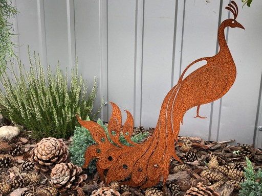 Dekoracja z biegiem czasu będzie nabierać pięknej rudości, my przedstawiamy elementy wycięty z świeżej blachy która dopiero zaczyna zachodzić rdzą.