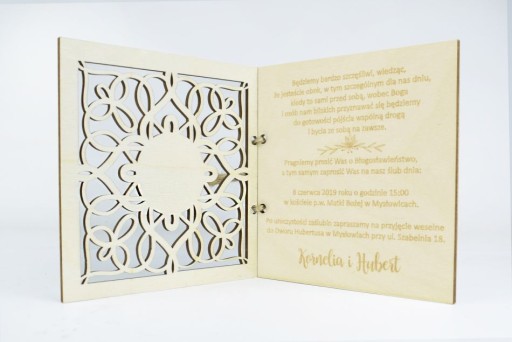 Zaproszenie w formie drewnianej kartki będzie idealnym sposobem na podkreślenie rangi zaproszonych gości - tych najważniejszych czyli Rodziców.
