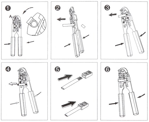 Zaciskacz do wtyków Bell 8 pin i wtyków modularnych (skrętka telekomunikacyjna).