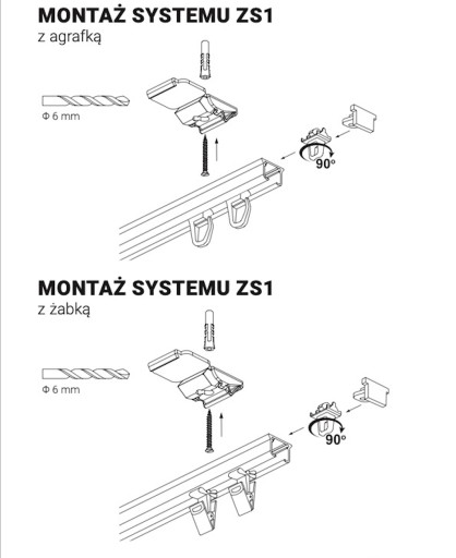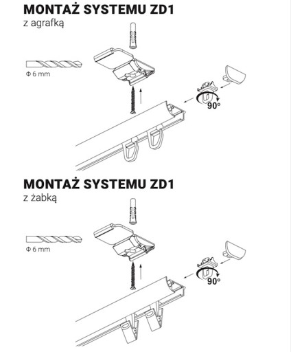 Poniżej zdjęcia przedstawiające szyny sufitowe ZS1 i ZD1 jednotorowe