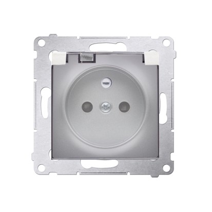 Simon 54 Gniazdo bryzgoszczelne z/u IP44 z klapką transparentną bez uszczelki srebrny
