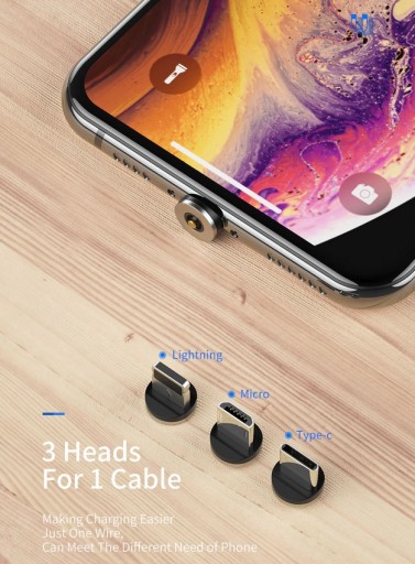 Kabel Magnetyczny jest kompatybilny z każdym urządzeniem wyposażonym w port USB-C, Micro USB, Lightning