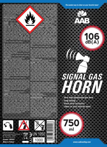 AAB Signal GAS Horn jest bezpieczny dla środowiska przy użyciu gazu wysokiej jakości zgodnie z najnowszymi wytycznymi UE