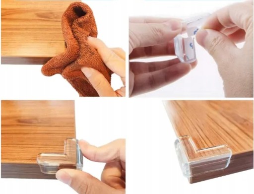 Zabezpieczenia narożników zabezpieczają ostre krawędzie płyt meblowych skutecznie chroniąc przed uszkodzeniem głowy i ciała szczególnie małych dzieci.Zabezpieczenia są bardzo praktyczne, elastyczne, wykonane z silikonu, charakteryzują się estetycznym wyglądem.