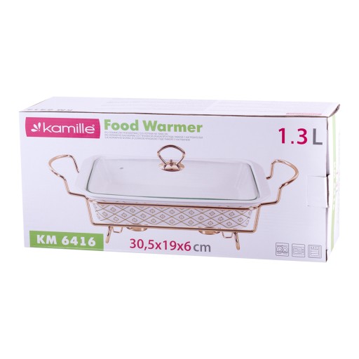 ✔️ Eleganckie żaroodporne naczynie Kamille z funkcjonalnym podgrzewaczem doskonale nadaje się do podania mięs, pieczeni, zapiekanek oraz warzyw. Podgrzewacz sprawi, że posiłek zachowa temperaturę i będzie ciepły przez cały czas.