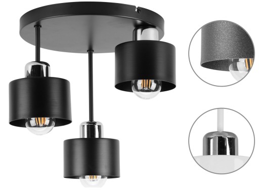 Prezentowana lampa posiada miejsce na trzy źródła światła.