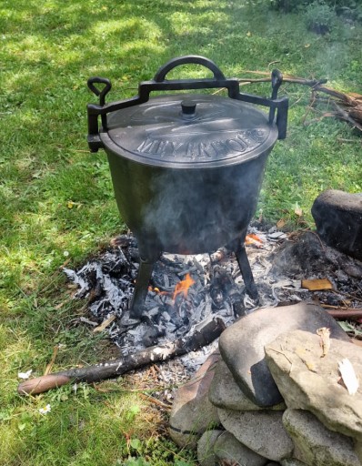 Oryginalny kociołek Meyerhoff wykonany z najwyższej jakości stopu żeliwa odpornego na najwyższe temperatury. Specjalny odpowietrznik w pokrywie, który reguluje ciśnienie wewnątrz kociołka, przez co jest on w 100% bezpieczny. W środku pokryty żaroodporną emalią, która chroni i zabezpiecza wnętrze kociołka, dodatkowo ułatwiając jego mycie i konserwacje (nie ma potrzeby impregnowania po każdym użyciu). Kociołek może stać bezpośrednio w ognisku, a dzięki poręcznemu uchwytowi może być zawieszony również nad ogniskiem. Produkt posiada również odkręcane nóżki, przez co kociołek można umieścić w kominku lub bezpośrednio w palenisku. Dzięki wytłoczeniu na pokrywie masz pewność, że kupujesz oryginalny i bezpieczny produkt.