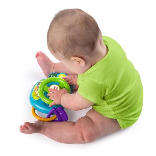Wesołe małpki zapraszają na wycieczkę pełną kolorów, światełek i muzyki! Ten podręczny panel sterowania zawiera wiele aktywnych elementów, a wśród nich terkoczącą kierownicę, 3 kolorowe przyciski uruchamiające małpie dźwięki, wesołe melodie i światełka oraz gryzak, który przyda się każdemu ząbkującemu maluchowi. Regulacja głośności pozwoli dostosować zabawkę do potrzeb dziecka, a wyłącznik dźwięku umożliwi korzystanie z panelu w dowolnym miejscu, nie zakłócając przy tym spokoju otoczenia.