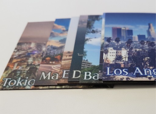 Miasta Świata na magnesie , każdy element wycięty jest osobno. Wydruk jest wykonany na folii magnetycznej o grubości 0,6 mm, dodatkowo pokryty laminatem, który zabezpiecza element przed uszkodzeniami. .