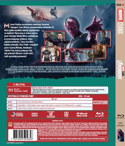 Hity Marvel Studios w nowym, kolekcjonerskim wydaniu. W Avengers: Czas Ultrona stworzony w dobrej wierze przez Tony’ego Starka Ultron, zmienia się w zagrażającego ludzkości przerażającego potwora. Teraz Iron Man, Kapitan Ameryka, Thor i Hulk – wspierani przez Czarną Wdowę, Hawkeye’a i Nicka Fury muszą połączyć siły, aby pokonać Ultrona.