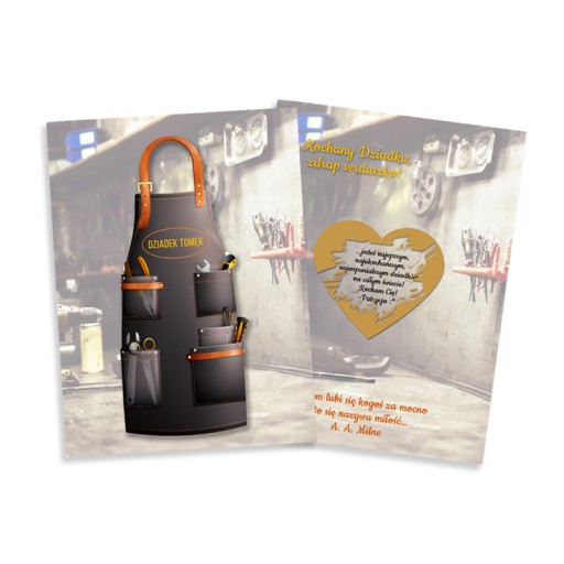 - Imię Dziadka (zostanie umieszczone na fartuchu z przodu kartki)