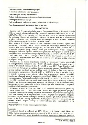 - Instrukcję obsługi zawierającą ogólne zasady obsługi urządzenia wraz z opisem przeprowadzenia procesu ozonowania,