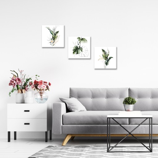 КАРТИНА ДЛЯ ГОСТИНОЙ СПАЛЬНЯ МОНСТРА ЛИСТЬЯ БЕЛАЯ СОВРЕМЕННАЯ 3 КАРТИНЫ ХОЛСТ