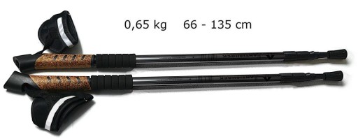 Kije wykonane są z wzmocnionego aluminium (zmniejsza to wagę i zabezpiecza przed korozją). Składają się z dwóch teleskopowych części. Minimalna długośc to 66 cm, po maxymalnym wysunięciu otrzymujemy kije 135 cm.