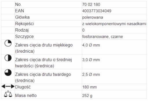 ➡️ Parametry techniczne szczypiec: