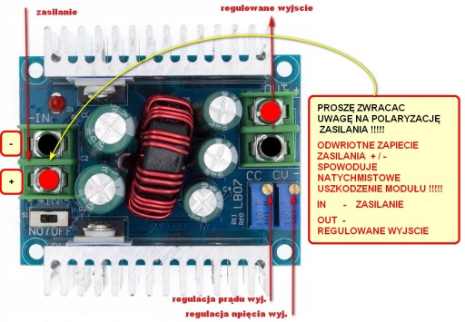 PRZETWORNICA DC-DC -Zasilacz umożliwia precyzyjną regulację napięcia oraz prądu wyjściowego w dużym zakresie.