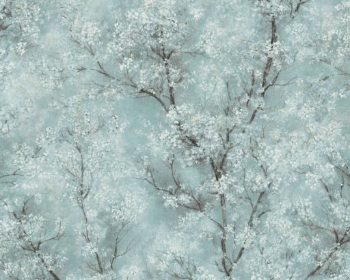 Tapety wyglądają jak piękny obraz kwitnących drzew na zielono-miętowym tle,