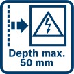 - Maks. głębokość detekcji, przewody pod napięciem 50 mm