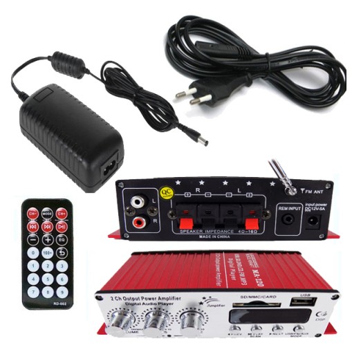 Wzmacniacz ten świetnie nadaje się do instalacji audio w domach, salonach, poczekalniach, łazienkach oraz skuterach. Znakomicie spisuje się w zestawach z głośnikami sufitowymi oraz ściennymi. Wzmacniacz posiada wbudowane radio FM wraz z teleskopową anteną, gniazdem USB oraz czytnikiem kart SD. Całość sterujemy pilotem.