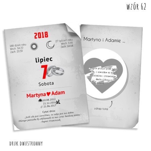 Podaruj młodej parze oryginalną kartkę "ala kartka z kalendarza" ze zdrapką, pod którą możesz ukryć dowolny tekst / życzenia.