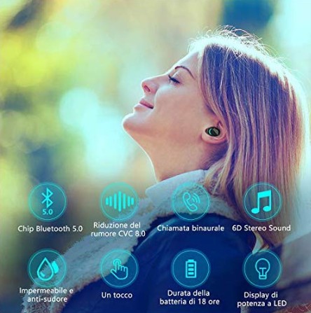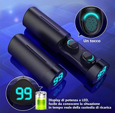 - Nasz zestTaw słuchawkowy Bluetooth łączy się z urządzeniami mobilnymi za pomocą nowo zaktualizowanego układu Bluetooth 5.0. Sygnał jest bardziej stabilny, a transmisja szybsza, nie musimy się martwić o przerywane połączenia, długie dotknięcie zwiększa głośność prawego ucha „+”, długie dotknięcie obniża głośność lewego ucha ”-„ Cyfrowy wyświetlacz LED mocy: