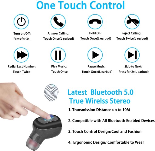 - PRAWDZIWE HIFI STEREO DŹWIĘK AUDIO Słuchawki douszne Bluetooth TWS (True Wireless Stereo) wytwarzają prawdziwy dźwięk Hi-Fi, naturalny i autentyczny dźwięk oraz niesamowitą jakość dźwięku stereo HD z wyjątkowym głębokim basem, który zapewni niesamowite wrażenia audio. Lubisz muzykę o efektywnym zasięgu do 10 stóp.