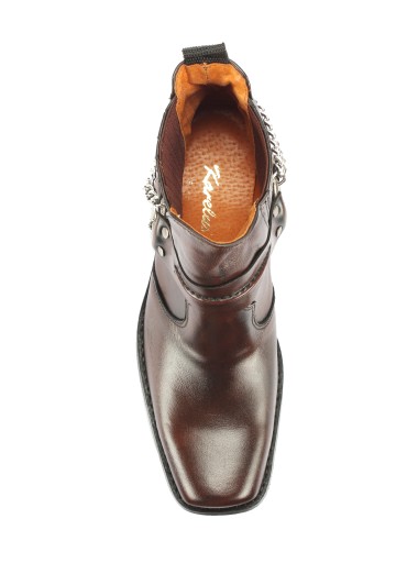 KLASYCZNE KOWBOJKI MODEL 610 WYKONANE ZE SKÓRY NATURALNEJ BYDLĘCEJ.Z BOKU CHOLEWKI ZNAJDUJE SIĘ GUMKA CO BARDZO UŁATWIA WKŁADANIE OBUWIA.BUTY OZDOBIONE PASKIEM Z ŁAŃCUCHEM NOWOŚĆ 2018R