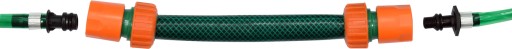 Połączenia pomiędzy wężem zraszającym a wężem tradycyjnym możliwe za pomocą uniwersalnej szybkozłączki. Jej wybór zależy od średnicy posiadanego węża ogrodowego (1/2", 3/4" lub 1")