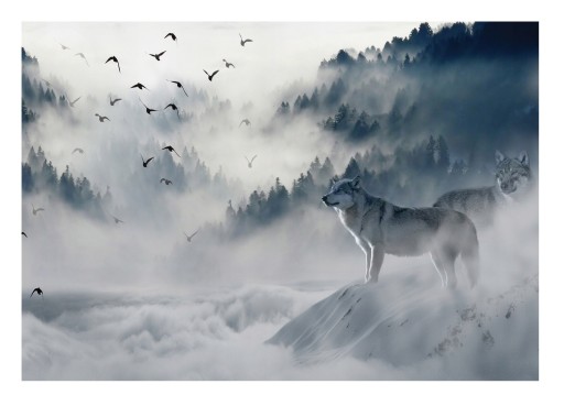 ФОТО ОБОИ ЛЕС В ТУМАНЕ ВОЛКИ ГОРЫ ДЕРЕВЬЯ 3D СПАЛЬНЯ ГОСТИНАЯ ОБОИ 368x254