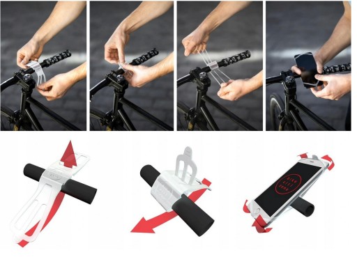 1. Owinąć uchwyt wokół kierownicy, przeciągnąć wąskie ucho Finn'a przez otwór.