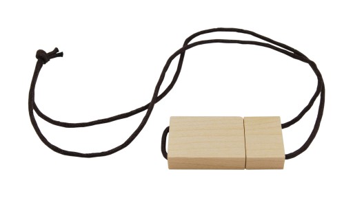 Drewniana obudowa sprawi, że będzie wyróżniał się na tle innych pendrive. Sznurek umożliwi zawieszenie pendrive np. na szyi.